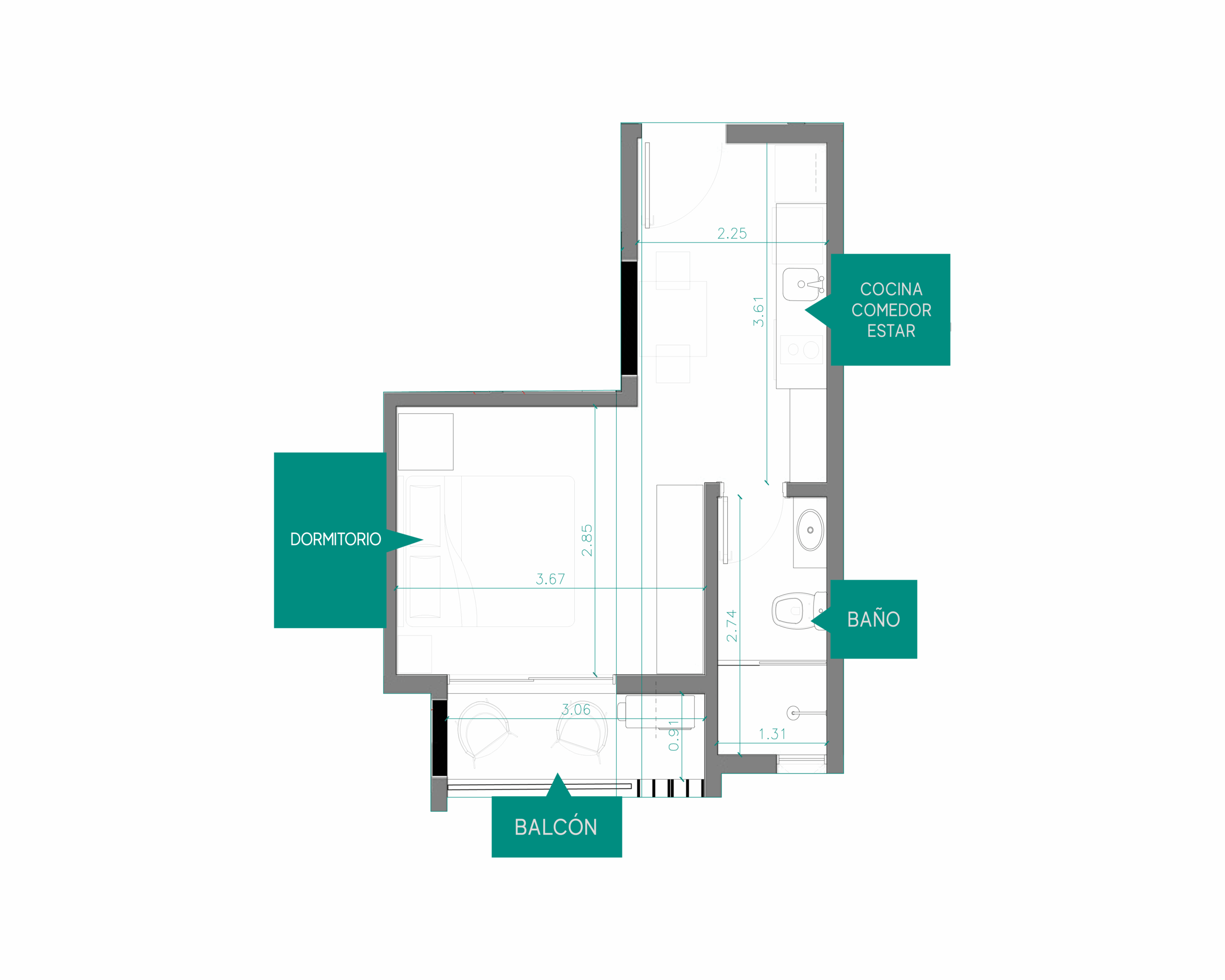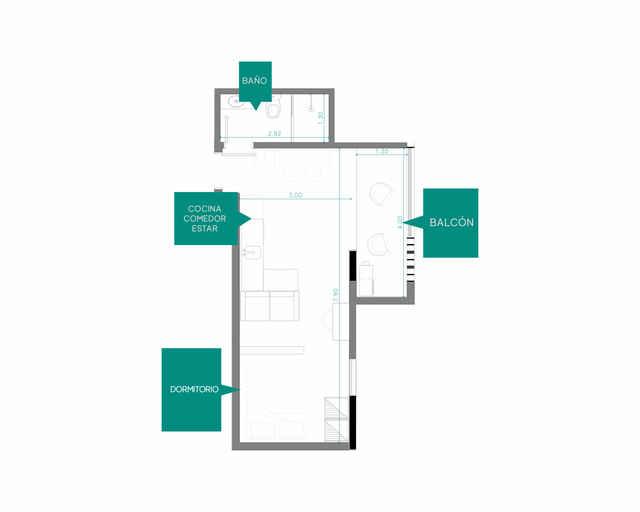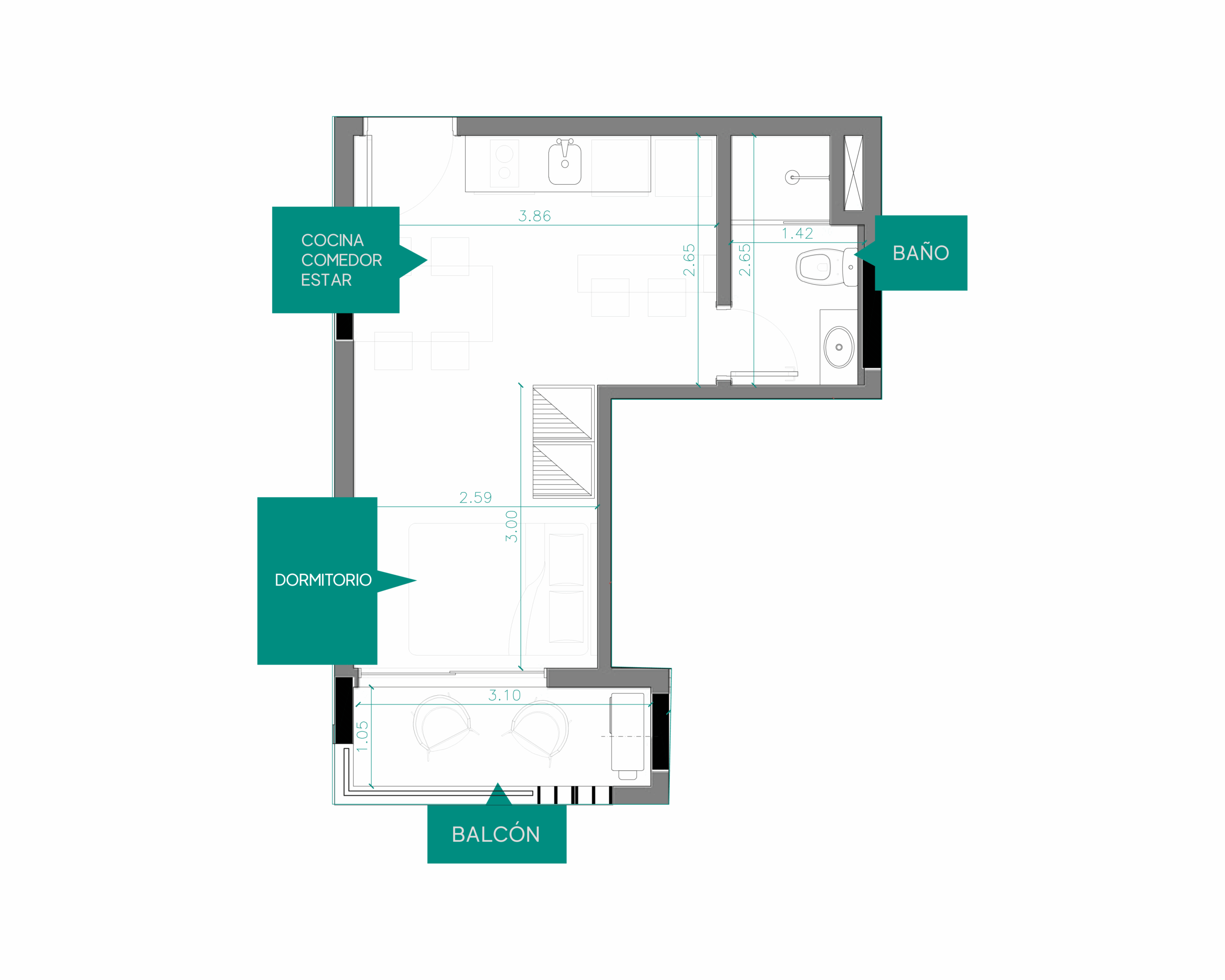 - Departamentos monoambientes, de 1 y 2 dormitorios