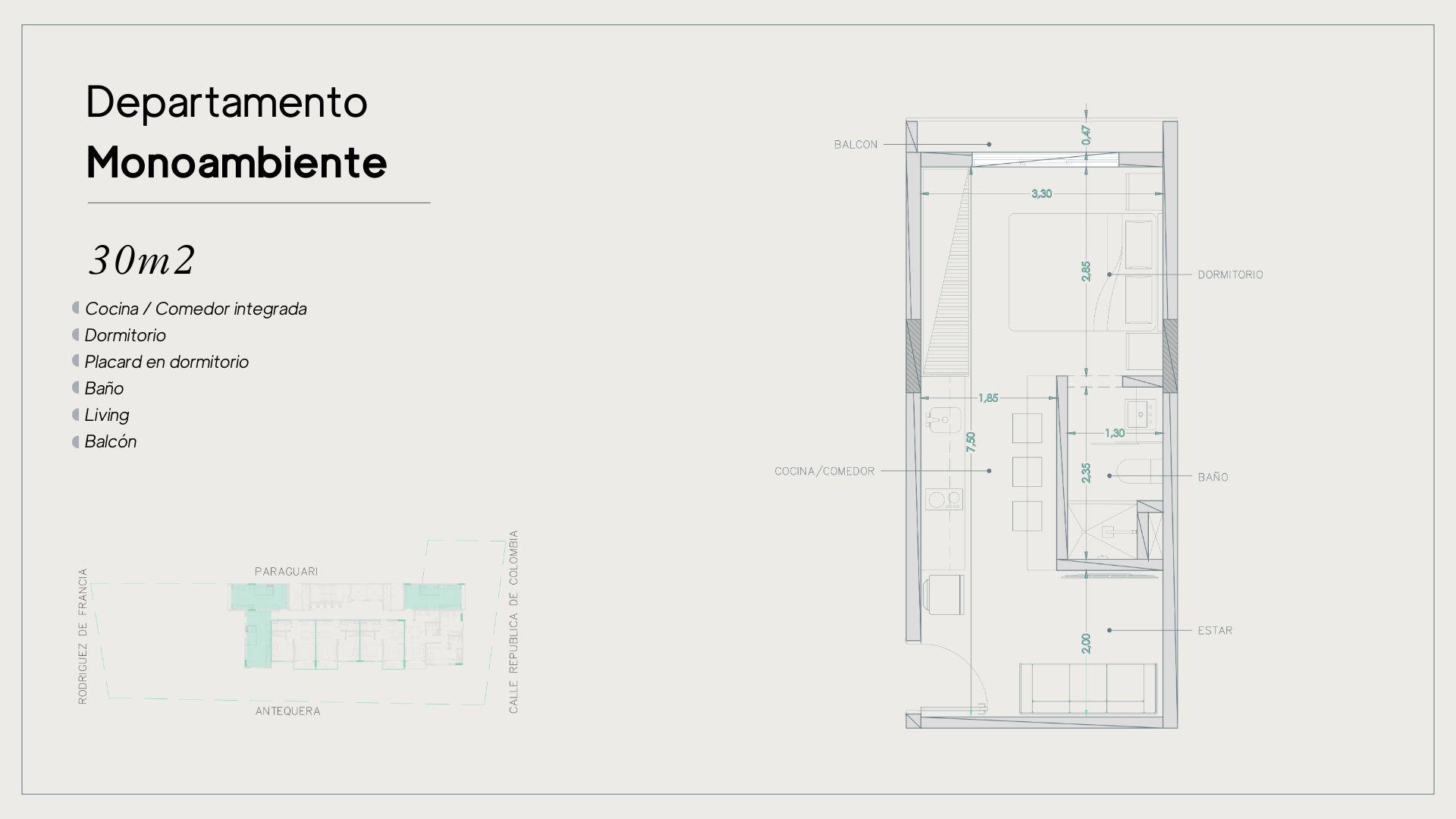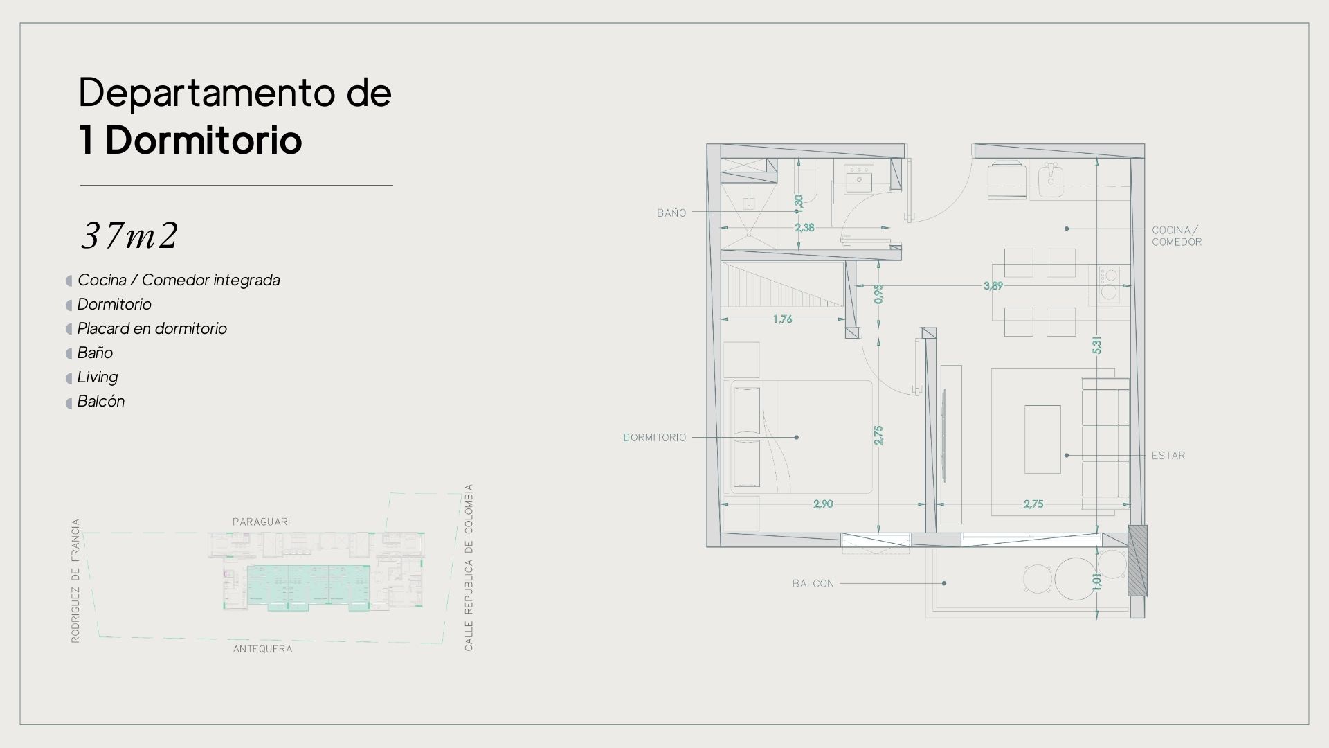 - monoambientes, 1 y 2 dormitorios